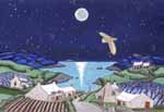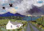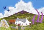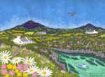 The things I see while out walking inspire my paintings: low white-washed cottages and grey-stone farmhouses, small lichen-walled fields of early potatoes, black-faced sheep dotted across hillsides, wind-bent hawthorn bushes and always the ever-changing sea. I paint entirely from my imagination, creating very personal interpretations of places remembered from my walks, some places are real, others are imagined.