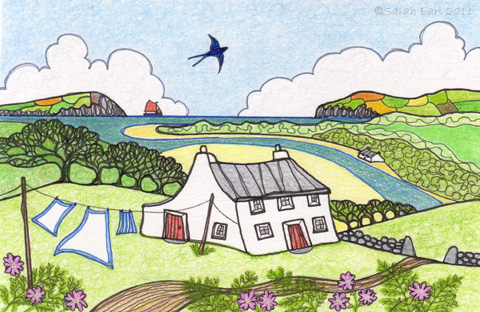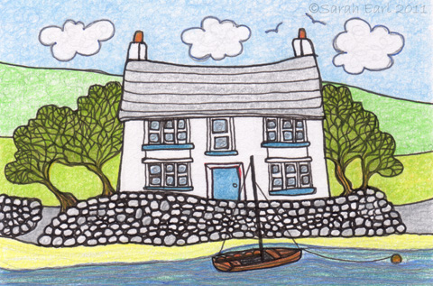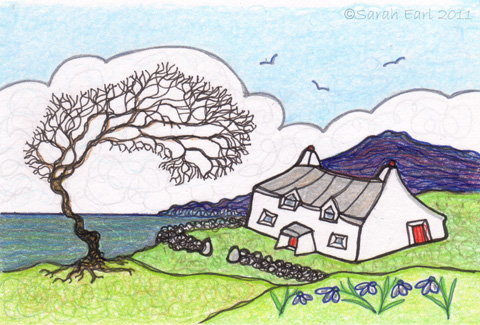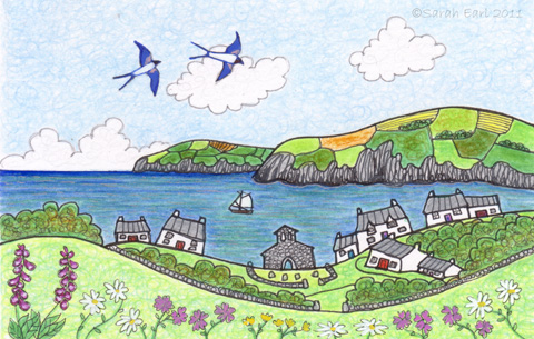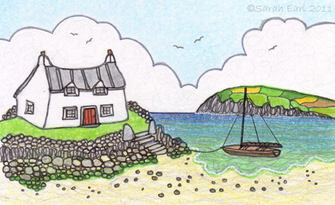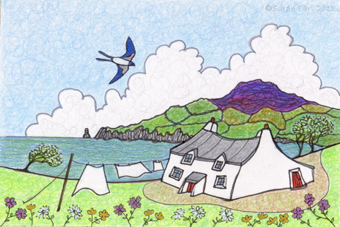 I use coloured inks � black, red, blue, silver and gold � and watercolour pencils to create each drawing.